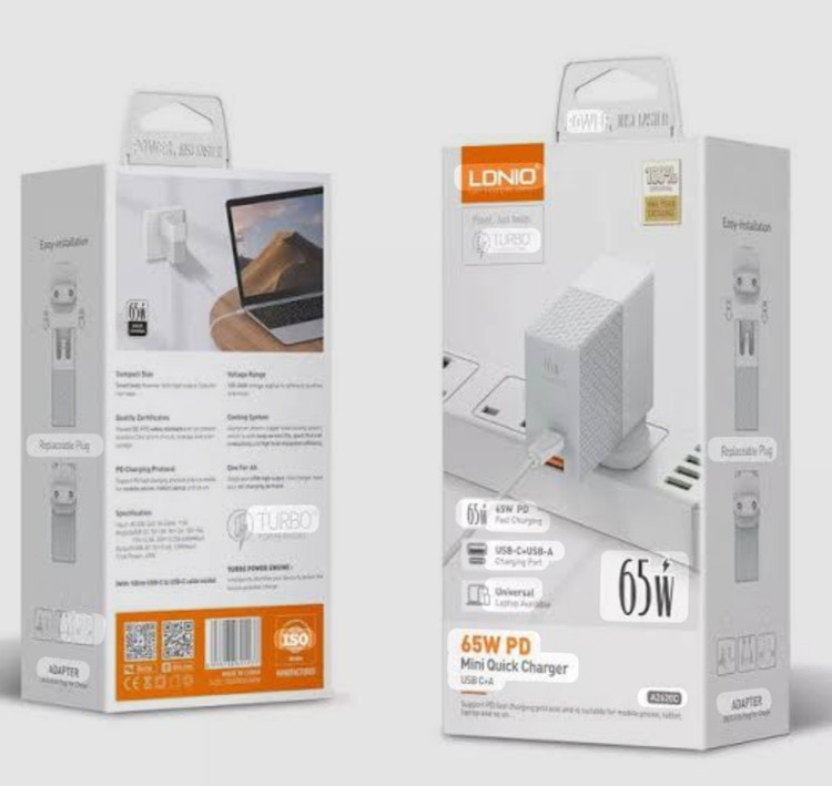 توربو سریع مناسب تب لت. لب تاب و گوشی 65وات سه پورت .usb.c+.usb.a